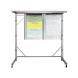 Металлическая мобильная конструкция с закрепленным алюминиевым карнизом для демонстрационных материалов.