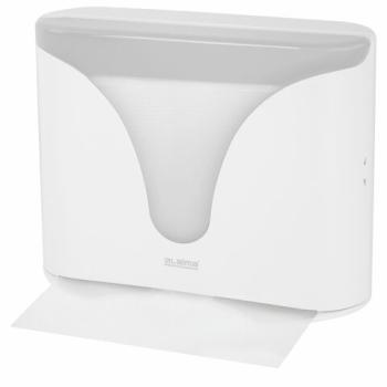 Диспенсер изготовлен из ударопрочного ABS-пластика. Вмещает одну пачку полотенец interfold, Z- или W-сложения. Обеспечивает высокий уровень гигиены и комфортную подачу полотенец. Имеется окошко для контроля остатка полотенец. Сочетается с расходными материалами других производителей. В комплект входят крепежные материалы для установки. Размер – 220х280х120 мм, цвет – белый.