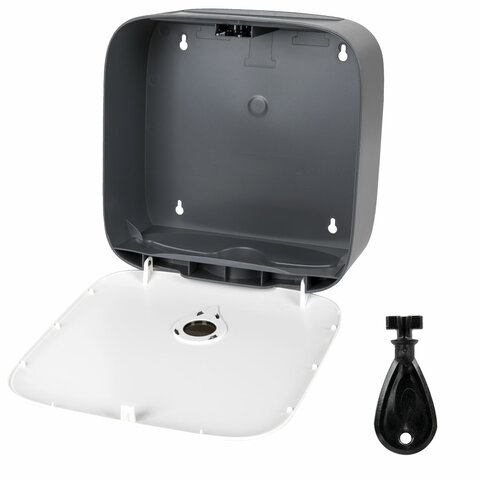 Антивандальный корпус изготовлен из ударопрочного ABS-пластика, позволяет использовать две пачки полотенец V-сложения. Обеспечивает высокий уровень гигиены и комфортную подачу полотенец. Имеется окошко для контроля остатка полотенец. Сочетается с расходными материалами других производителей. Оборудован самозахлопывающимся замком с ключом. В комплект входят крепежные материалы для установки. Размер - 285х279х129 мм.