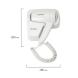 В комплект входит настенный держатель, способствующий компактному хранению в условиях крайне ограниченного пространства. Длина кабеля составляет 0,9 м, благодаря его спиральной конструкции он устойчив к спутыванию и провисанию, что повышает удобство эксплуатации фена.
