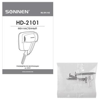 Сушилка для рук Дозатор для жидкого мыла Диспенсер для одноразовых сидений на унитаз Автоматический освежитель воздухаФен для волос SONNEN HD-2101 предназначен для сушки волос потоком теплого воздуха. Подходит для установки в гостиницах, бассейнах, фитнес-клубах, в раздевалках складских и производственных комплексов. Также может использоваться в личных ванных комнатах.