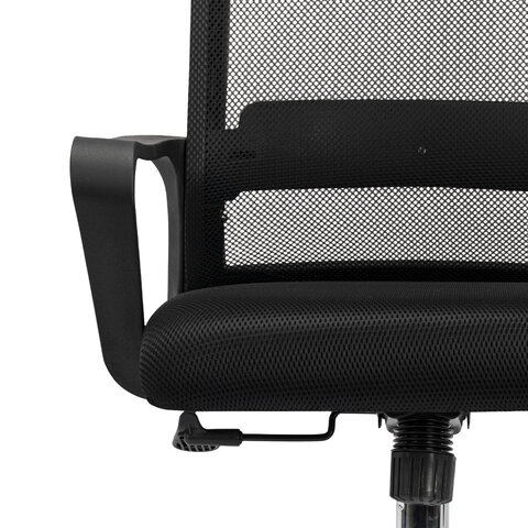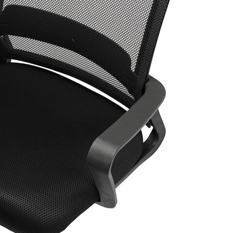 Спинка выполнена из прочного материала – акриловой сетки и имеет выраженную поясничную поддержку, обеспечивающую комфортную посадку в течение всего рабочего дня.