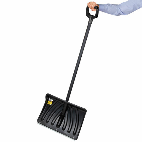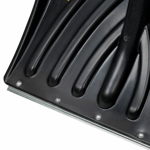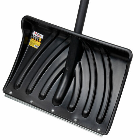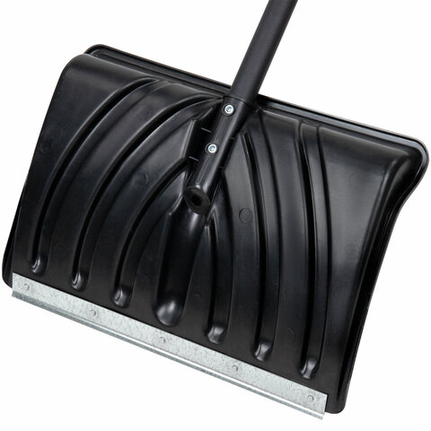 Снабжена оцинкованной планкой на заклепках, для большей прочности и долговечности, что существенно облегчает процесс уборки снега и продлевает срок службы инструмента.