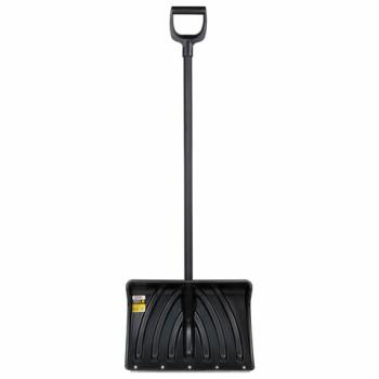 Лопата выполнена из ударопрочного и морозостойкого пластика, который выдерживает эксплуатацию при низких температурах (до -40 °C). Оснащена прочным алюминиевым черенком (порошковая матовая окраска не скользит) с удобной эргономичной V-образной рукояткой.