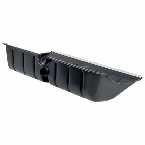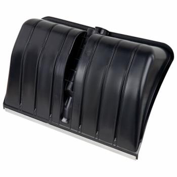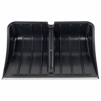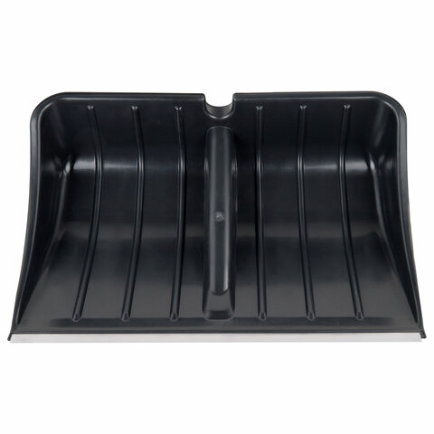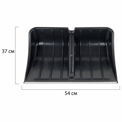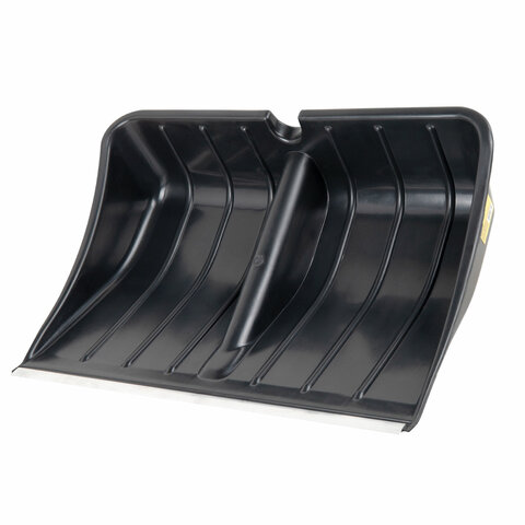 Лопата выполнена из ударопрочного и морозостойкого пластика, который выдерживает эксплуатацию при низких температурах (до -40 °C). Она усилена ребрами жесткости, что повышает ее прочностные характеристики, и снабжена алюминиевой планкой, что значительно облегчает процесс уборки снега и продлевает срок службы инструмента.