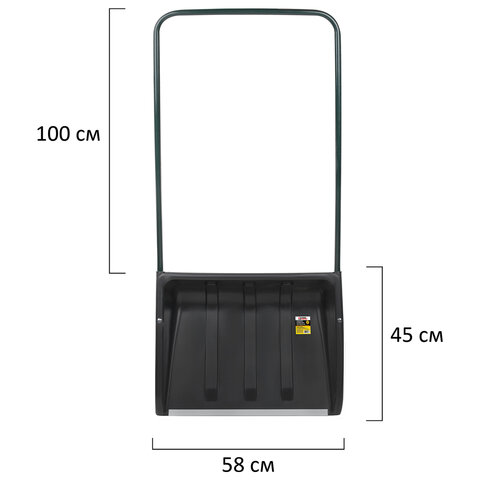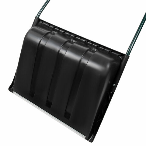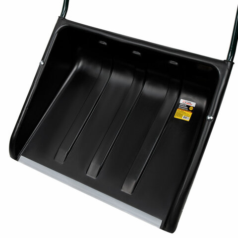 Лопата выполнена из ударопрочного и морозостойкого пластика, который выдерживает эксплуатацию при низких температурах (до -40 °C). Прочный металлический черенок П-образной формы гарантирует комфорт в работе. Лопата усилена ребрами жесткости, что повышает ее прочностные характеристики, и снабжена алюминиевой планкой, что значительно облегчает процесс уборки снега и продлевает срок службы инструмента.