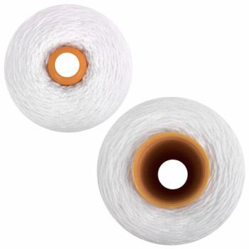 Нить диаметром 2 мм, скрученная из четырех высокопрочных полиэфирных нитей, намотана на конусную пластиковую бобину. Изготовлена из полиэфирного (лавсанового) волокна белого цвета. Мало подвержена воздействию ультрафиолетовых лучей. Не боится холода и сырости.