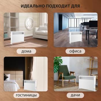 Корпус из прочного металла обеспечивает долговечность, а защита от перегрева гарантирует безопасность эксплуатации. Компактные размеры (455х560х145 мм) и лаконичный белый дизайн делают конвектор гармоничным дополнением любого интерьера.