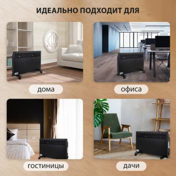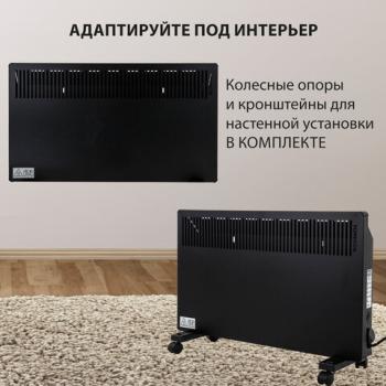 Корпус из прочного металла обеспечивает долговечность, а защита от перегрева гарантирует безопасность эксплуатации. Компактные размеры (435х650х185 мм) и современный черный дизайн делают конвектор гармоничным дополнением любого интерьера.