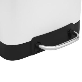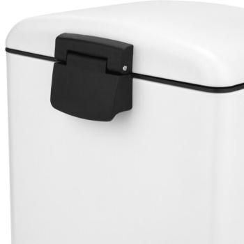 Изготовлено из металла с порошковым покрытием, что обеспечивает максимально долгий срок службы. Ведро устойчиво благодаря антискользящим вставкам. Оборудовано удобной педалью для открывания, позволяя вам выбрасывать мусор, не прикасаясь к ведру. Благодаря встроенному доводчику крышка закрывается плавно и бесшумно. Крышка плотно прилегает к ведру, препятствуя распространению запахов. Внутреннее съемное пластиковое ведро на 12 л имеет специальное отверстие на задней стенке для фиксации мусорного пакета. Объем рекомендуемого мешка – 30 л.
