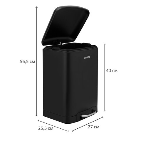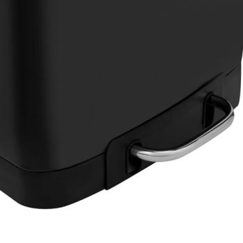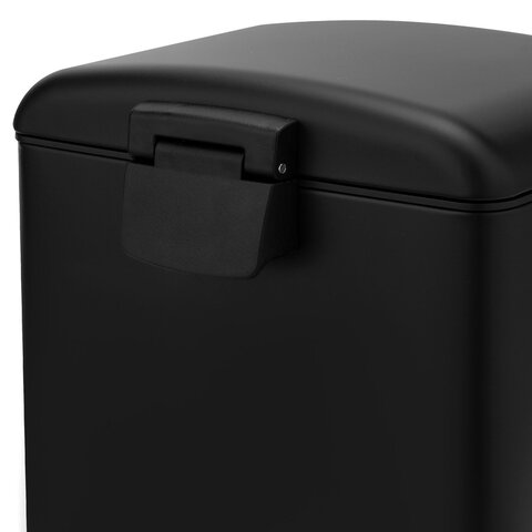 Изготовлено из металла с порошковым покрытием, что обеспечивает максимально долгий срок службы. Ведро устойчиво благодаря антискользящим вставкам. Оборудовано удобной педалью для открывания, позволяя вам выбрасывать мусор, не прикасаясь к ведру. Благодаря встроенному доводчику крышка закрывается плавно и бесшумно. Крышка плотно прилегает к ведру, препятствуя распространению запахов. Внутреннее съемное пластиковое ведро на 12 л имеет специальное отверстие на задней стенке для фиксации мусорного пакета.