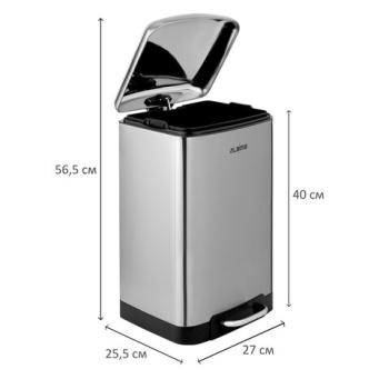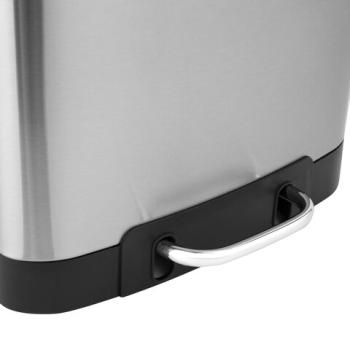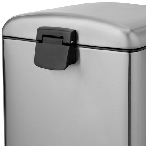Корпус и крышка ведра изготовлены из матовой нержавеющей стали SS410, на которой не остаются отпечатки пальцев. Ведро устойчиво благодаря антискользящим вставкам. Оборудовано удобной педалью для открывания, позволяя вам выбрасывать мусор, не прикасаясь к ведру. Благодаря встроенному доводчику крышка закрывается плавно и бесшумно. Крышка плотно прилегает к ведру, препятствуя распространению запахов. Внутреннее съемное пластиковое ведро на 12 л имеет специальное отверстие на задней стенке для фиксации мусорного пакета.