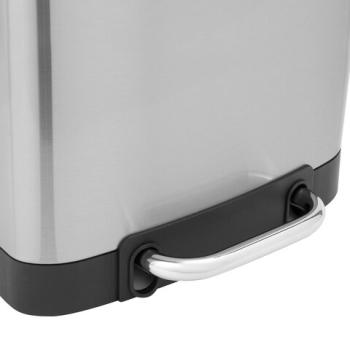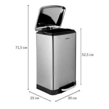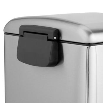 Корпус и крышка ведра изготовлены из матовой нержавеющей стали SS410, на которой не остаются отпечатки пальцев. Ведро устойчиво благодаря антискользящим вставкам. Оборудовано удобной педалью для открывания, позволяя вам выбрасывать мусор, не прикасаясь к ведру. Благодаря встроенному доводчику крышка закрывается плавно и бесшумно. Крышка плотно прилегает к ведру, препятствуя распространению запахов. Внутреннее съемное пластиковое ведро на 20 л имеет специальное отверстие на задней стенке для фиксации мусорного пакета.