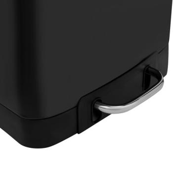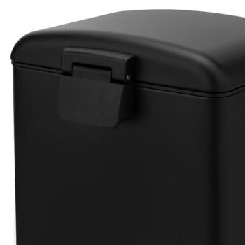 Изготовлено из металла с порошковым покрытием, что обеспечивает максимально долгий срок службы. Ведро устойчиво благодаря антискользящим вставкам. Оборудовано удобной педалью для открывания, позволяя вам выбрасывать мусор, не прикасаясь к ведру. Благодаря встроенному доводчику крышка закрывается плавно и бесшумно. Крышка плотно прилегает к ведру, препятствуя распространению запахов. Внутреннее съемное пластиковое ведро на 6 л имеет специальное отверстие на задней стенке для фиксации мусорного пакета.