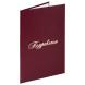 Изготовлена из прочного картона, покрытого бумвинилом. Папка для поздравлений формата А4 выполнена в насыщенном бордовом цвете. На обложке - орнамент и надпись "Поздравляем!", нанесенные с помощью золотого тиснения. Снабжена лентой для удержания документов (ляссе). Предусмотрено нанесение логотипа.