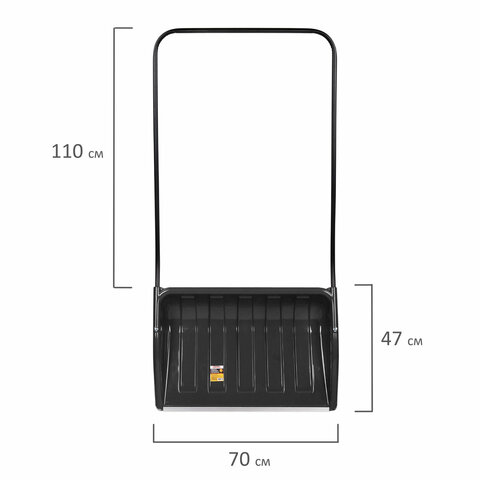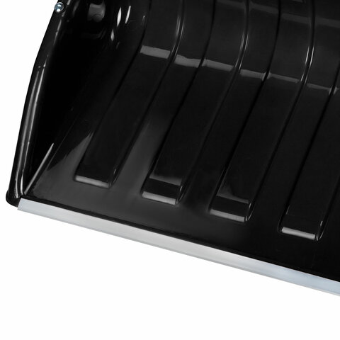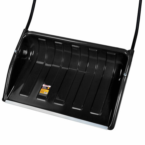 Лопата выполнена из ударопрочного и морозостойкого пластика, который выдерживает эксплуатацию при низких температурах (до -40 °C). Прочный металлический черенок П-образной формы гарантирует комфорт в работе. Лопата усилена ребрами жесткости, что повышает ее прочностные характеристики, и снабжена алюминиевой планкой, что значительно облегчает процесс уборки снега и продлевает срок службы инструмента.