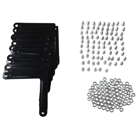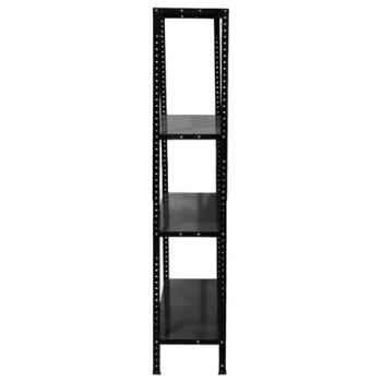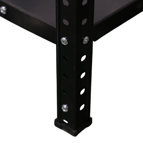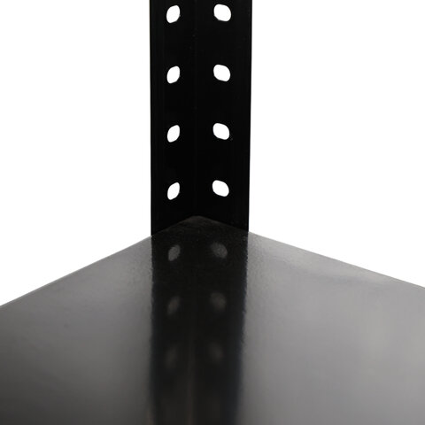 Для повышения жесткости всей конструкции верхнюю и нижнюю полку нужно усилить дополнительными Г-образными уголками (поставляются в комплекте 16 шт.). Промежуточные полки собираются без усиления.