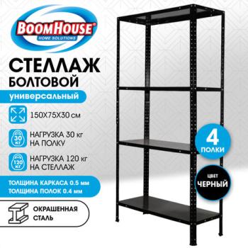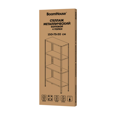 Металлический стеллаж BOOMHOUSE предназначен для хранения документов и различных грузов в офисе, на складе, в архиве. Собирается с помощью болтов, за счет чего достигается устойчивая конструкция.