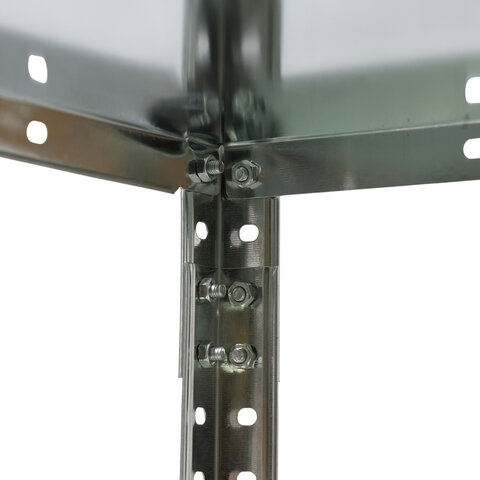 Описание Металлический стеллаж BOOMHOUSE предназначен для хранения документов и различных грузов в офисе, на складе, в архиве. Собирается с помощью болтов, за счет чего достигается устойчивая конструкция. Возможны два варианта сборки стеллажа: - высокий единый стеллаж (180 см) благодаря сборке стойки, - 2 невысоких (90 см) раздельных стеллажа. Стеллаж изготовлен из оцинкованной стали, что позволяет его использовать в помещениях с повышенной влажностью. Для повышения жесткости всей конструкции верхнюю и нижнюю полку нужно усилить дополнительными Г-образными уголками (поставляются в комплекте 16 шт.). Промежуточные полки собираются без усиления. Максимальная нагрузка на полку – до 30 кг, на стеллаж – до 150 кг. Шаг регулирования высоты полок – 25 мм. Стойка имеет разборную конструкцию, благодаря чему стеллаж поставляется в компактной упаковке. Комплектуются подпятниками, предохраняющими пол от повреждений. Вся необходимая фурнитура для сборки в комплекте. Покупайте стеллаж BOOMHOUSE – простой и экономичный способ организовать хранение вещей!