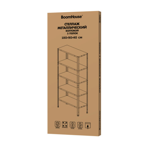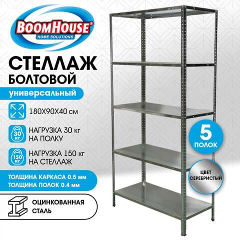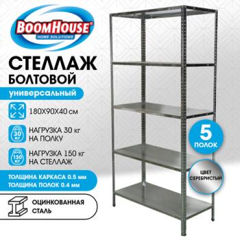 Стеллаж металлический BOOMHOUSE (БУМХАУС), 1800x900x400 мм, 5 полок, нагрузка на стеллаж до 150 кг, серебристый