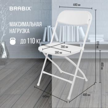 Прочная рама из металла толщиной 1,2 мм обеспечит долговечность эксплуатации, а пластиковые насадки на ножках не дадут испортить напольное покрытие. Модель имеет пластиковую спинку с эргономичным профилем. Складная конструкция сэкономит место при перевозке и хранении. Стул способен выдерживать нагрузку до 110 кг.