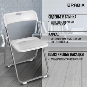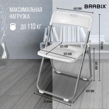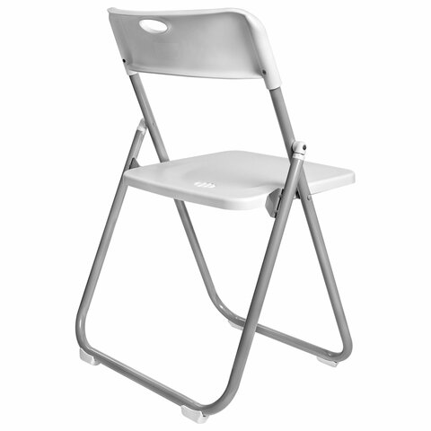 Спинка и сиденье выполнены из прочного полипропилена. Прочная рама из стали обеспечит долговечность эксплуатации, а пластиковые насадки на ножках не дадут испортить напольное покрытие. Модель имеет пластиковую спинку с эргономичным профилем. Складная конструкция сэкономит место при перевозке и хранении. Стул способен выдерживать нагрузку до 110 кг.