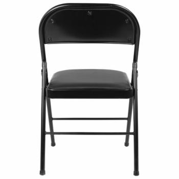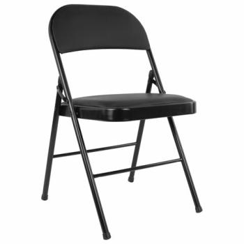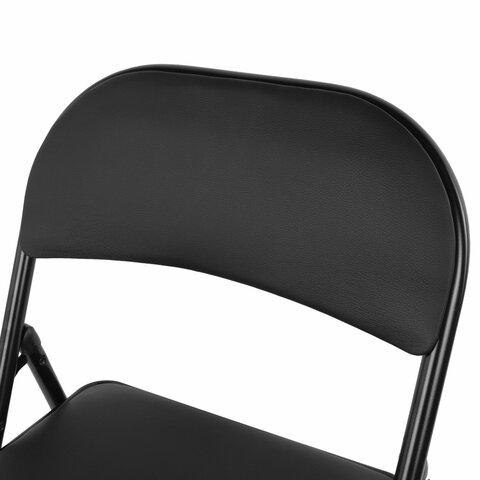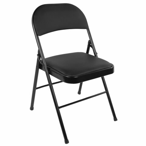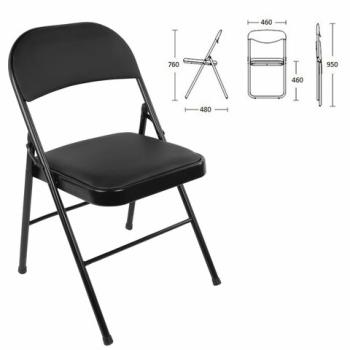 Материал обивки - качественный кожзаменитель с повышенной износостойкостью. Складная конструкция сэкономит место при перевозке и хранении. Прочная металлическая рама и металлическое основание сиденья обеспечат долговечность эксплуатации, а пластиковые насадки на ножках не дадут испортить напольное покрытие. В набивке спинки и сиденья использован поролон высокой плотности. Стул способен выдерживать нагрузку до 110 кг.