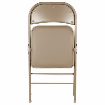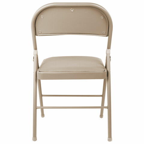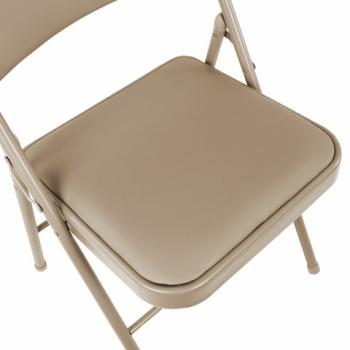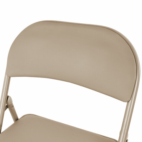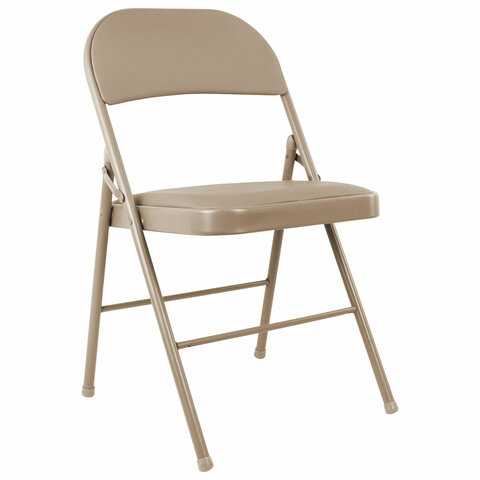 Материал обивки - качественный кожзаменитель с повышенной износостойкостью. Складная конструкция сэкономит место при перевозке и хранении. Прочная металлическая рама и металлическое основание сиденья обеспечат долговечность эксплуатации, а пластиковые насадки на ножках не дадут испортить напольное покрытие. В набивке спинки и сиденья использован поролон высокой плотности. Кресло способно выдерживать нагрузку до 110 кг.