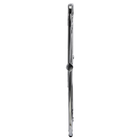 Стальной хромированный каркас прочный и устойчивый. На нем закреплены пластиковые накладки, чтобы предотвратить скольжение и защитить напольное покрытие от повреждений.