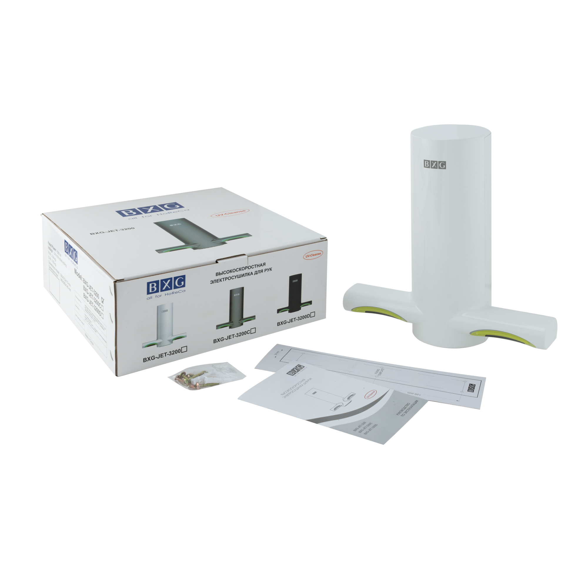 Безопасность: BXG-JET-3200D обладает самым высоким классом пыле/влагозащиты IP24- (исключено попадание влаги и крупнодисперсной пыли вовнутрь устройства со всех сторон) и возможность короткого замыкания или удара электрическим током при правильной эксплуатации исключена. Благодаря ИК-датчикам и технологии микропроцессорного управления осуществляется независимый контроль, который предотвращает слишком долгое использование сушилки или использование не по назначению. Прибор оснащён устройством автоматического отключения на случай перегрева, короткого замыкания или скачков напряжения в электросети.