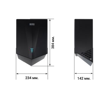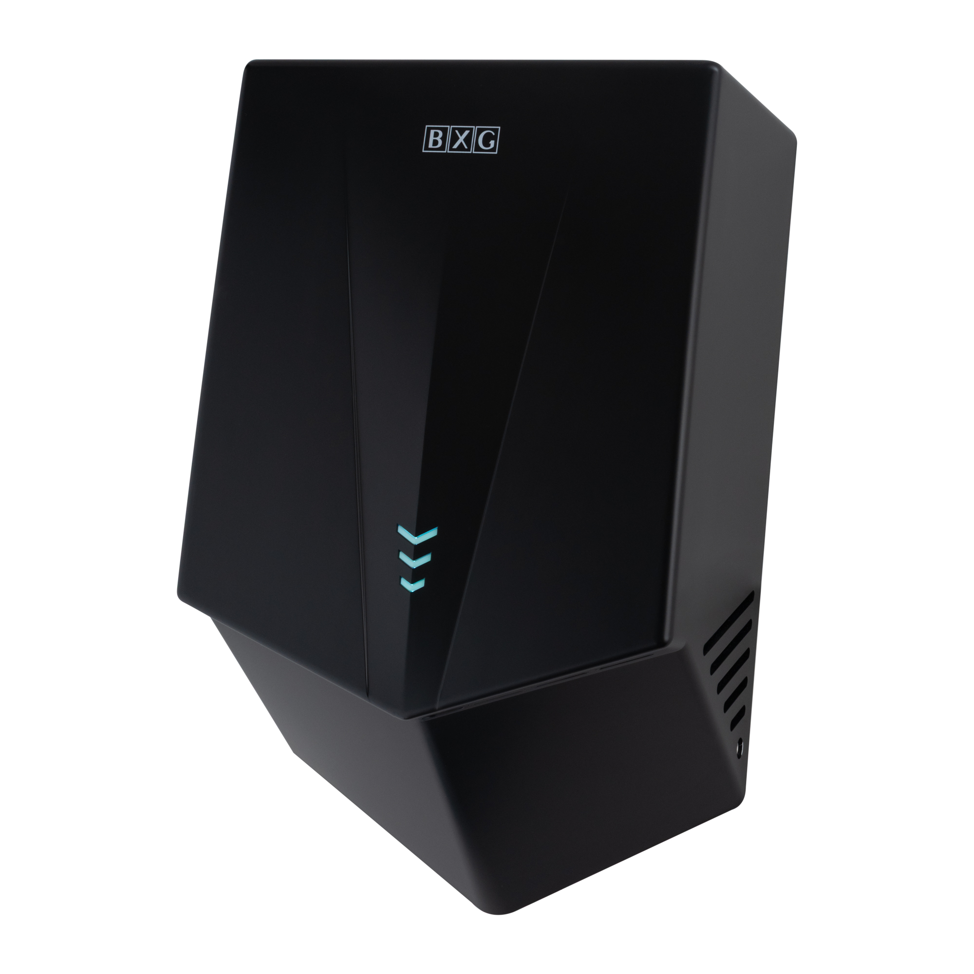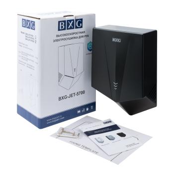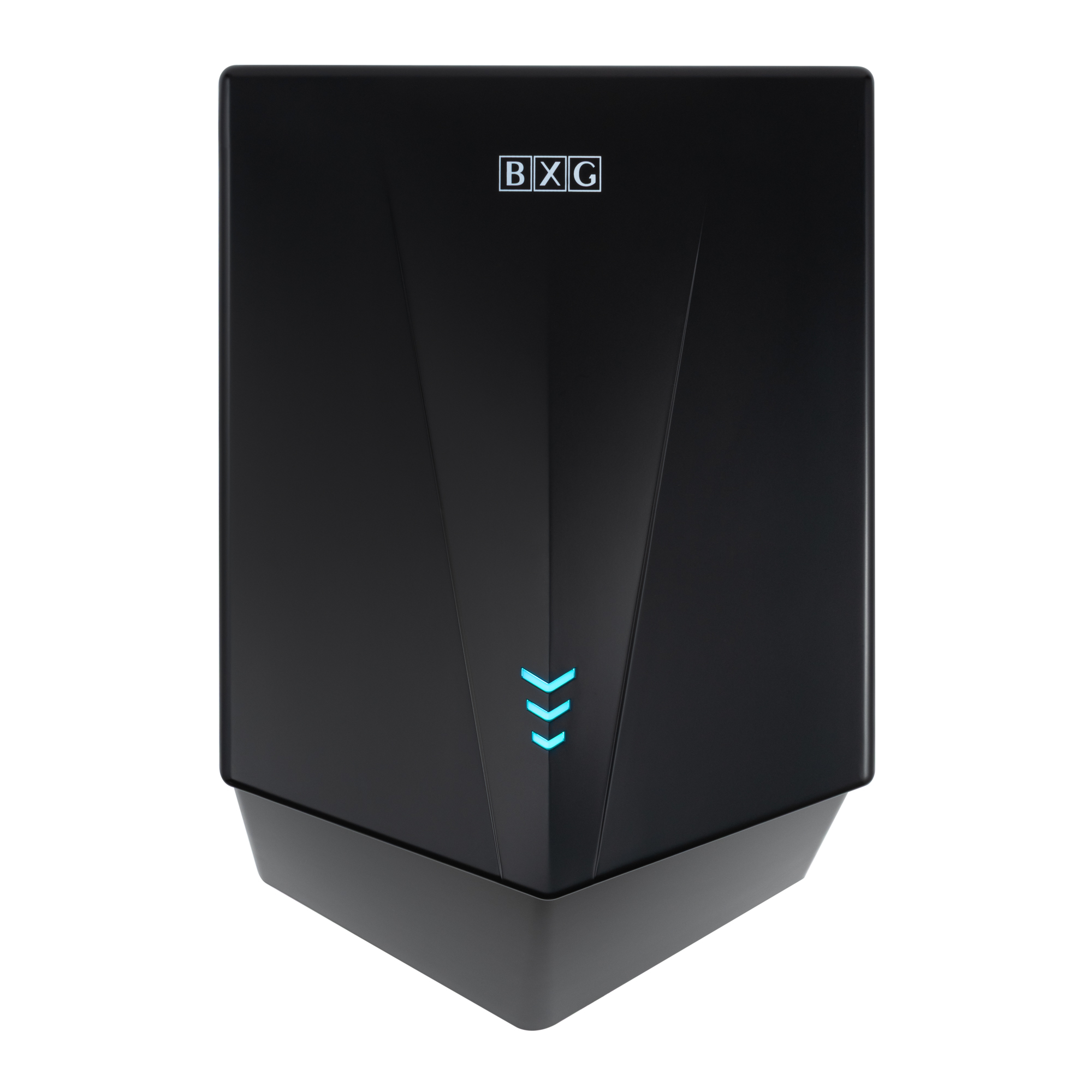 BXG-JET-5700D — современная электросушилка для рук с интегрированной системой ультрафиолетового обеззараживания. Корпус устройства выполнен из высокопрочного ABS-пластика в элегантном чёрном цвете с матовым покрытием.