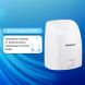 Мощность 1200 Вт обеспечивает время сушки рук за 15 секунд. Стандарт IPX1 гарантирует защиту от брызг. Включается и выключается сушилка автоматически при помощи инфракрасного сенсора. Пластиковый корпус в белом цвете впишется в любой интерьер. В комплект входит набор для монтажа: шурупы с пластиковыми дюбелями, кронштейн и шаблон установки для удобства разметки точек крепления.