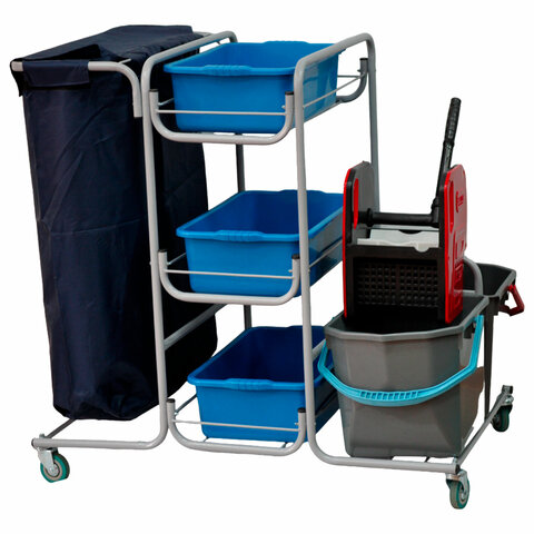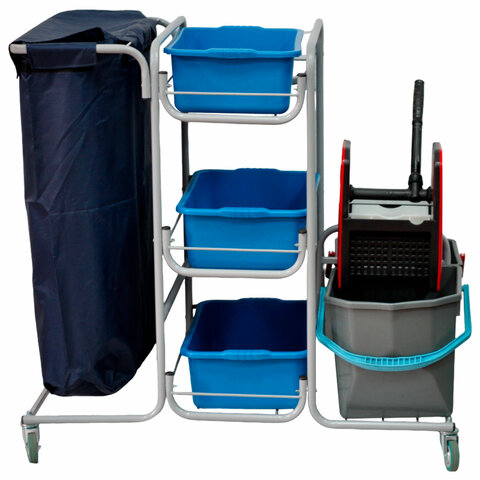 Благодаря своей конструкции, тележка обеспечивает комфортную уборку как в просторных помещениях, так и в условиях ограниченного пространства. Прочная конструкция и устойчивость тележки экономят время, значительно упрощают уборку и делают ее более качественной и профессиональной.