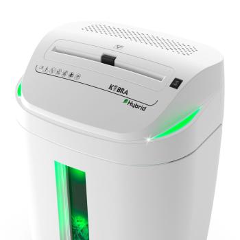 это инновационный уничтожитель документов современного дизайна, оснащенный новейшей гибридной системой управления питанием, которая позволяет производить до 15% измельчения за счет накопленной энергии. Эта эксклюзивная технология обеспечивает работу за счет использования накопленной энергии и автоматического отключения от основного источника питания для обеспечения нулевого энергопотребления при завершении измельчения.