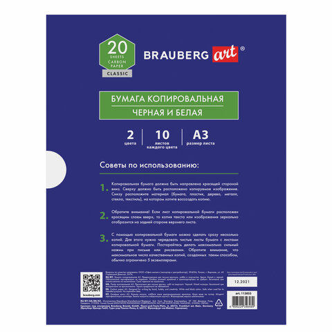 Копировальная бумага BRAUBERG ART "CLASSIC" предназначена для письма вручную, хобби и творчества.