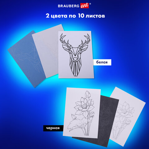 Имеет большой формат А3 и односторонний красящий слой белого или черного цвета. Не пачкается. Может использоваться многократно. 20 листов, по 10 белого и черного цвета.