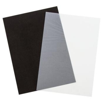 Имеет стандартный формат А4 и односторонний красящий слой черного цвета. Не пачкается. Может использоваться многократно. 25 штук в упаковке хватит на долгое время. В комплект входит 25 листов кальки.