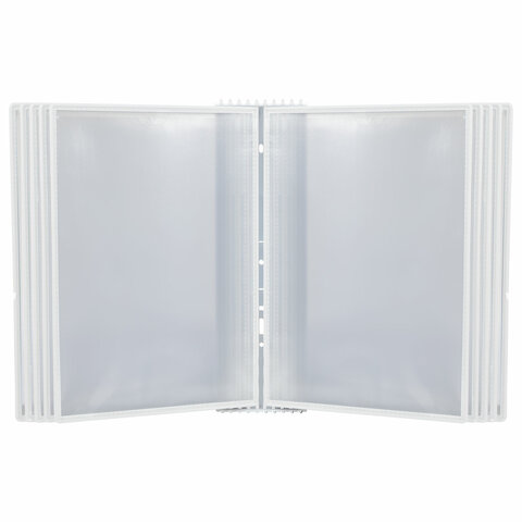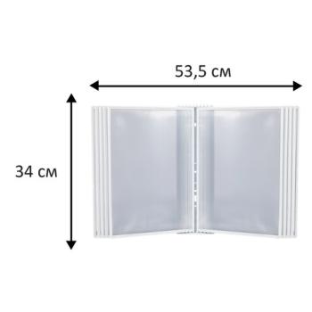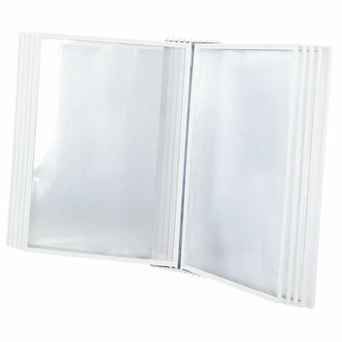 10 двусторонних панелей позволяют одновременно разместить до 20 листов формата А4. Опора и рамка демосистемы изготовлены из прочного АБС-пластика. Прозрачный карман из ПВХ обладает антибликовыми свойствами и надежно защищает документы от внешних воздействий.
