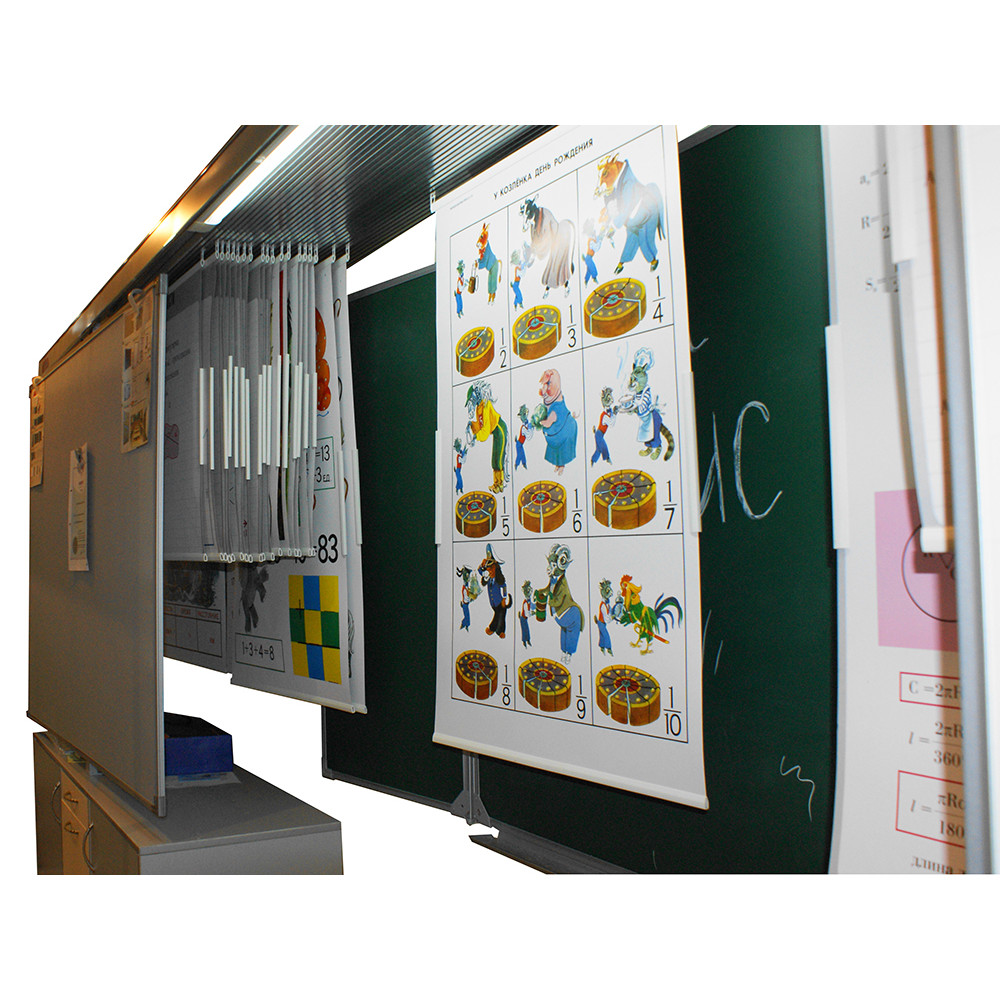 Эксклюзивный алюминиевый карниз стенда - это запатентованная демонстрационная система, разработанная специально для образовательных учреждений. Оснащена системой хранения и удобной демонстрации одновременно до 10 единиц плакатного материала.