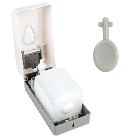 Корпус изготовлен из ударопрочного пластика ABS. Выдача мыла осуществляется экономичными порциями. Диспенсер сочетается с расходными материалами других производителей. Имеется окно для контроля уровня мыла. В комплект входят крепежные материалы. Тип – наливной. Объем – 1 л.