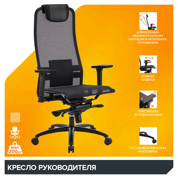 | Механизм: | Механизм качания с асинхронным отклонением сидения и спинки в соотношении 1:3, а также фиксацией кресла в нескольких положениях. Слайдер механизм регулировки глубины сиденья |