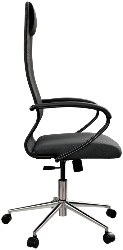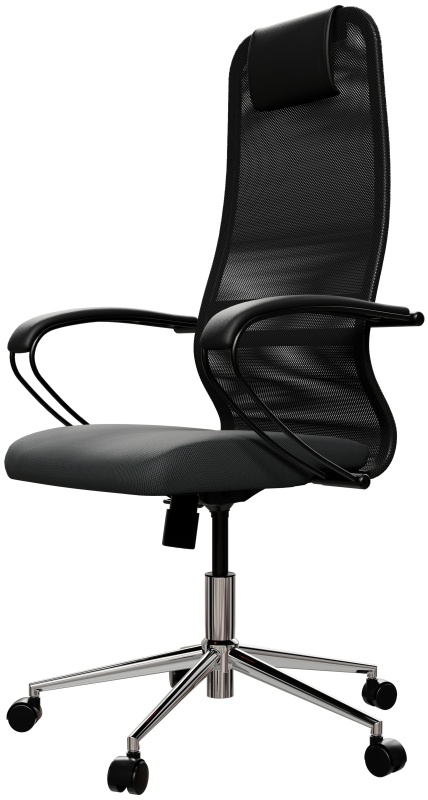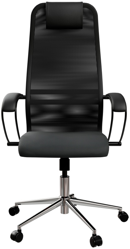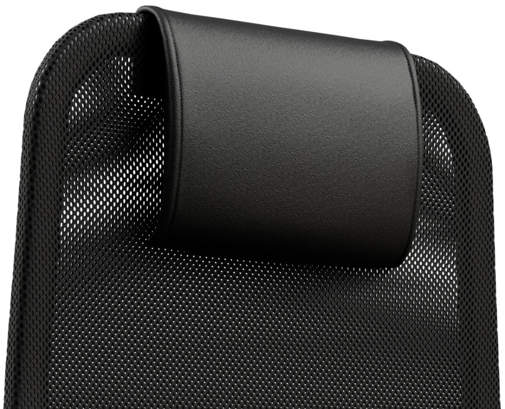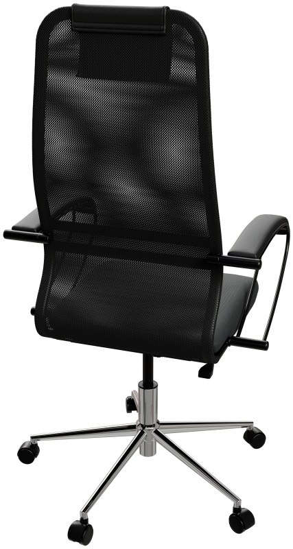 - Спинка: высокая с мягким подголовником, черное полимерное покрытие каркаса, высота 850 мм, ширина 475 мм