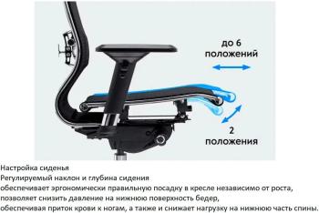 обеспечивает эргономически правильную посадку в кресле независимо от роста, позволяет снизить давление на нижнюю поверхность бедер, обеспечивая приток крови к ногам, а также и снижает нагрузку на нижнюю часть спины