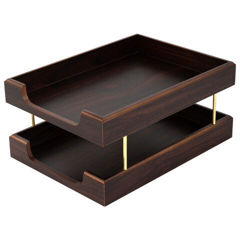 Все предметы изготовлены из дерева цвета "орех" с золотистой фурнитурой. Набор упакован в подарочную коробку, а также дополнительно в защитный гофрокорб для транспортировки.