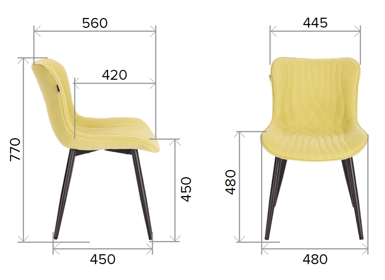 - Тип основания: Ножки из черного металла, обеспечивающие устойчивость и прочность конструкции стула.