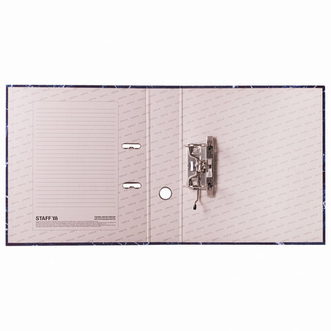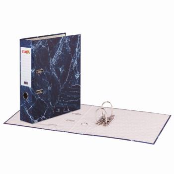 Папка формата А4 с вертикальной ориентацией изготовлена из качественного картона с покрытием под мрамор. Ширина корешка в 70 мм позволяет разместить до 500 листов. Прорези для колец на внешней крышке позволяют оставаться папке закрытой даже при большом количестве бумаг, а надежный арочный механизм легко справляется с ежедневными нагрузками. Корешок снабжен этикеткой для маркировки содержимого, что позволяет структурировать информацию.