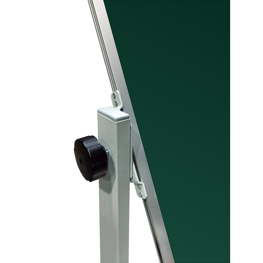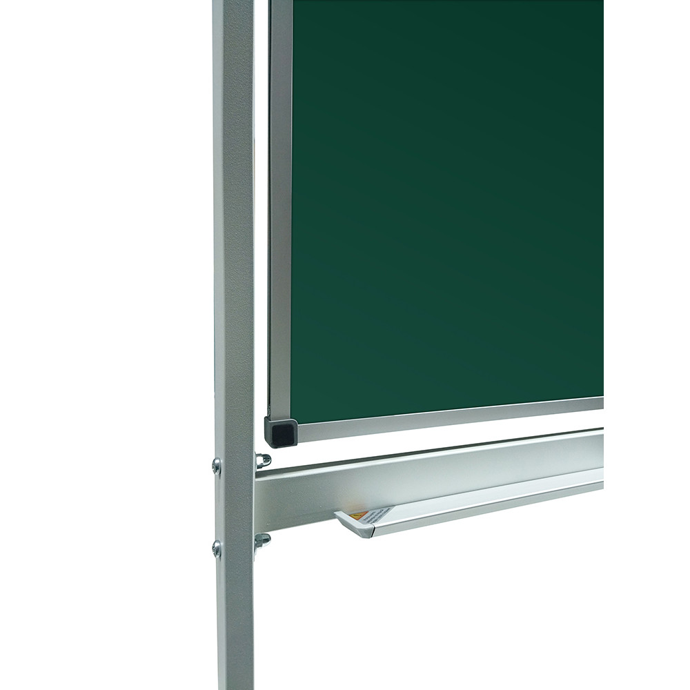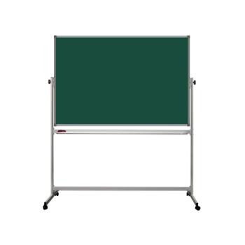 Поворотная передвижная доска, меловая, имеет темно-зеленую поверхность на металлическом каркасе, окрашенном порошковым методом под цвет алюминия. Имеется возможность изменения радиуса наклона доски. Поверхность предназначена для написания информации с помощью стандартного школьного мела.
