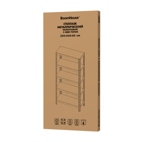 Металлический стеллаж BOOMHOUSE предназначен для хранения документов и различных грузов в офисе, на складе, в архиве. Легкая сборка без болтов.