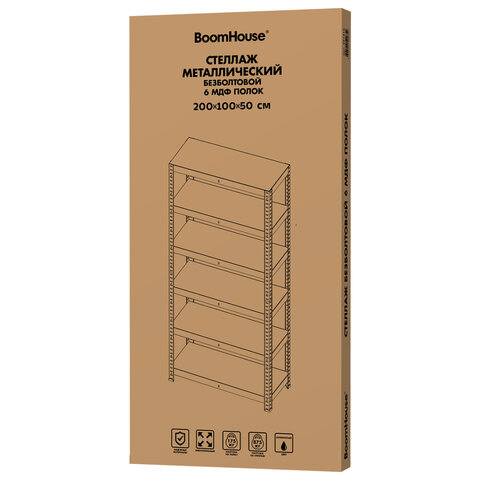 Металлический стеллаж BOOMHOUSE предназначен для хранения документов и различных грузов в офисе, на складе, в архиве. Легкая сборка без болтов.