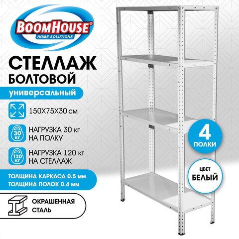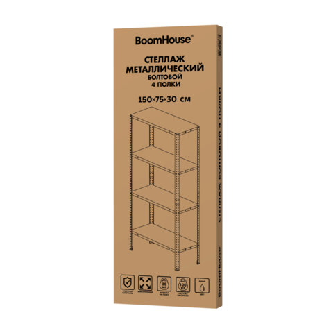 Металлический стеллаж BOOMHOUSE предназначен для хранения документов и различных грузов в офисе, на складе, в архиве. Собирается с помощью болтов, за счет чего достигается устойчивая конструкция.